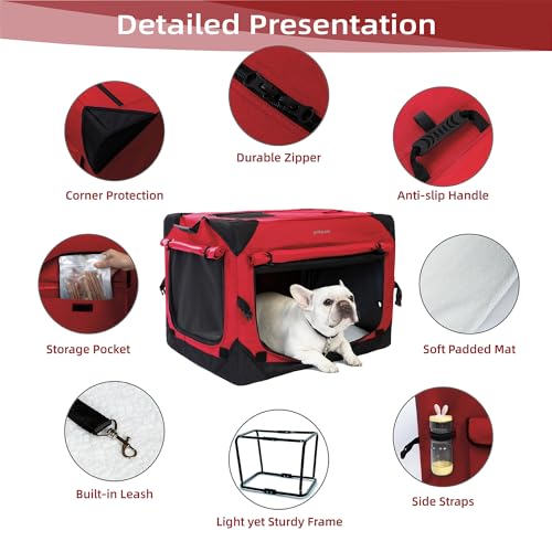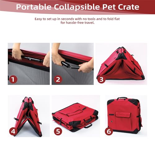 Specification: Pettycare 36 Inch Collapsible Dog Crate with Curtains, Travel Dog Crate for Airflow and Calm, Soft Pet Dog Kennel with Portable Bag and More Chew Proof Mesh, Indoor & Outdoor, Red+4 Door Curtains
